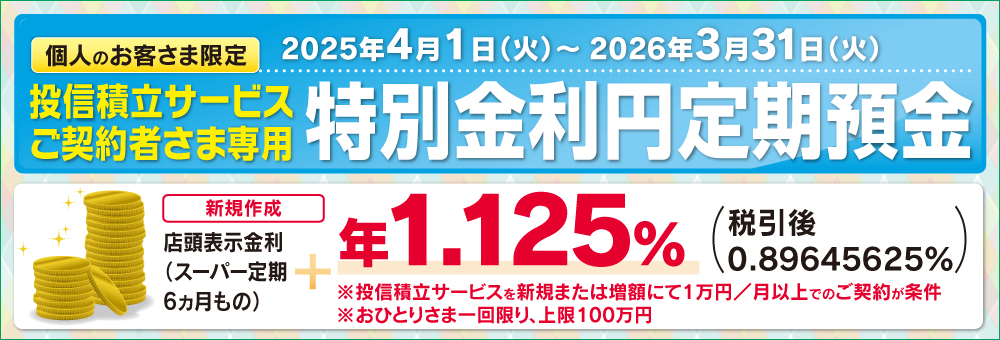 - 特別金利円定期預金は投信積立サービスと同時にお申込みください。