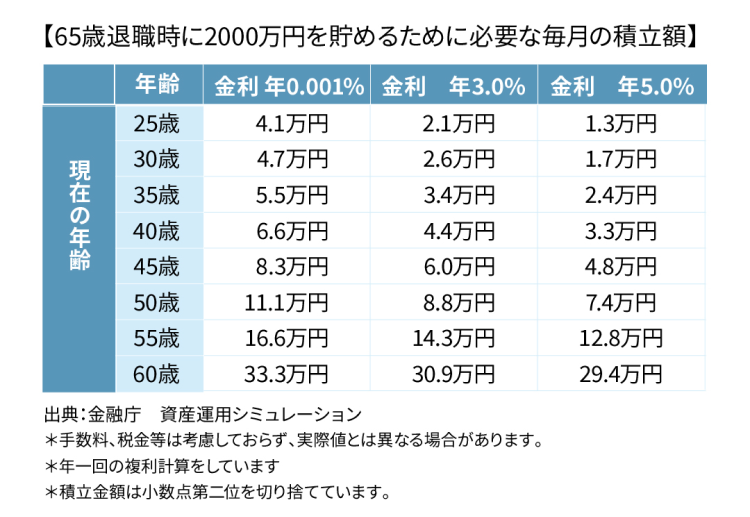 では、現役世代の方々が老後資金を準備するには、どれくらいの金額を積み立てていけば良いのでしょう。
