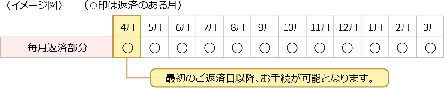⇒4月分のご返済をいただいた後に手続き可能となります。
