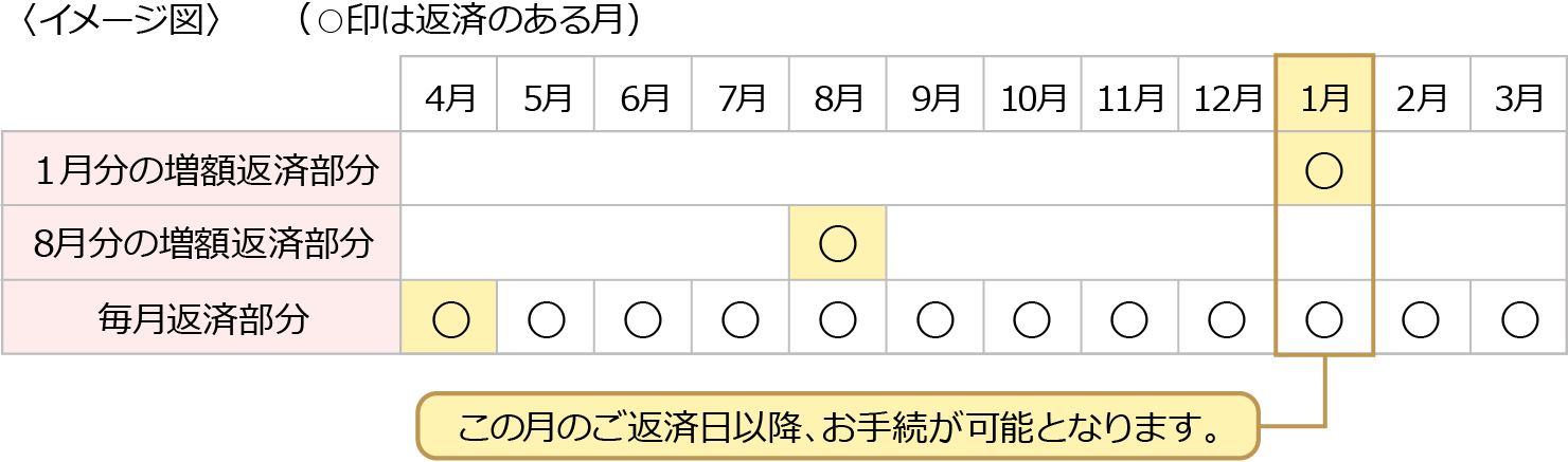 ⇒8月分および1月分のご返済をいただいた後に手続可能となります。