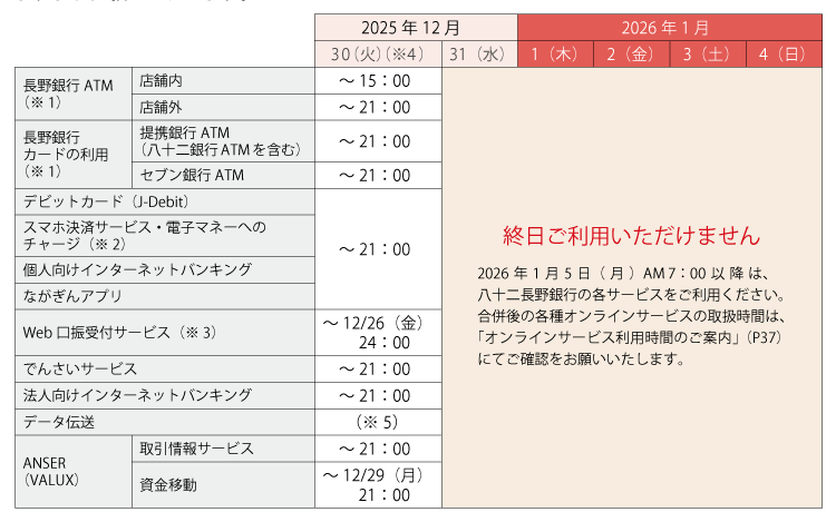 2026年1月5日(月)AM7:00以降は、八十二長野銀行の各サービスをご利用ください。