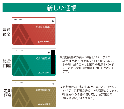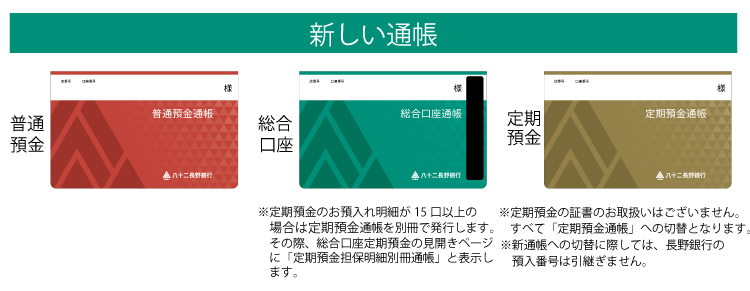 現在ご利用いただいている長野銀行の通帳・証書は、合併日以降ご利用いただけません。