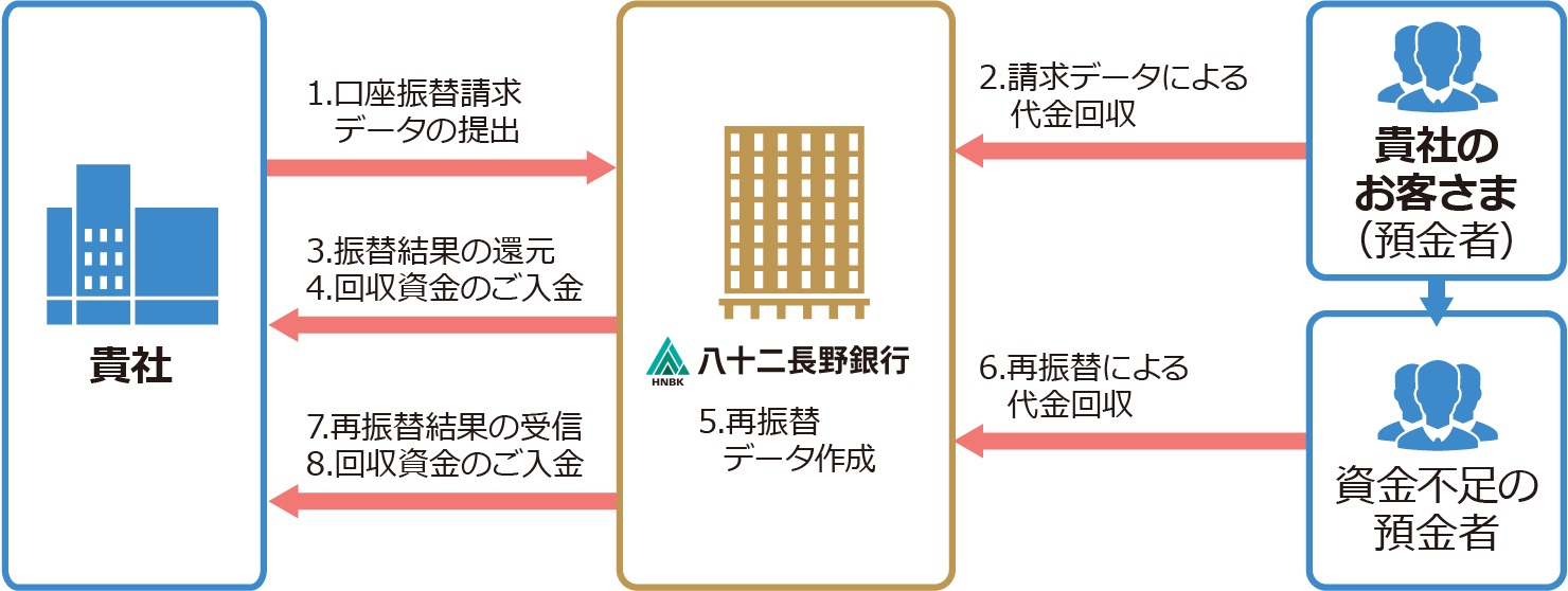 集金先のお口座から残高不足で引落しできない場合、当行が自動的に再振替(再引落し)を繰返すオプションサービスです。