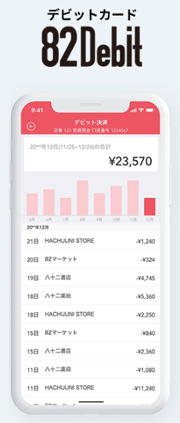 - 「82Debit<JCB>」のご利用明細をアプリ上でご確認いただくことができます。