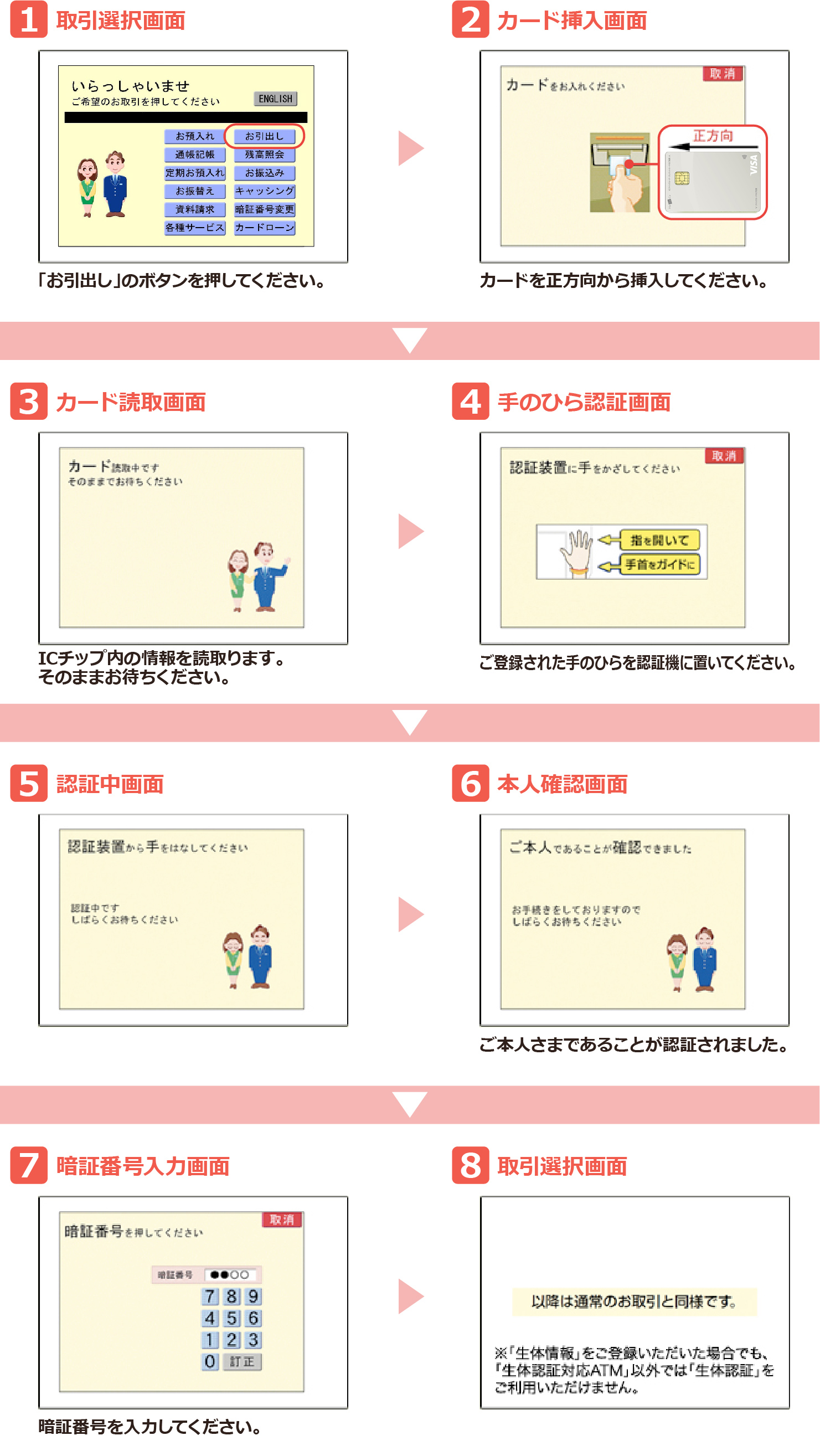 当行「生体認証対応ATM」でのご利用の場合