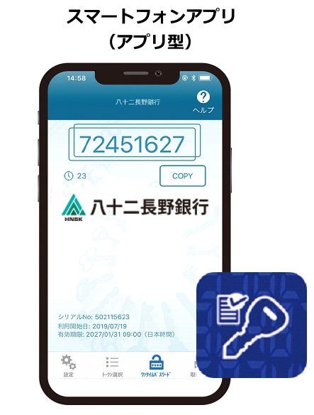 - アプリ型は、『取引認証』と『ワンタイムパスワード』が利用可能です。