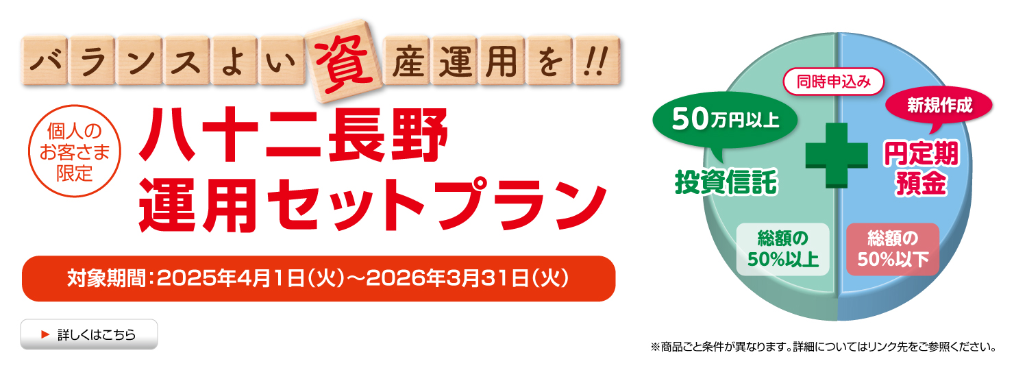 八十二長野銀行の投資信託サービスのメリットをご紹介します。はじめての投資でも安心のサービスをご提供しています。