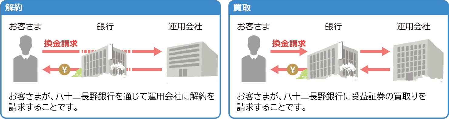 株式投資信託の換金方法には、「解約」による方法と「買取」による方法の2種類があります。