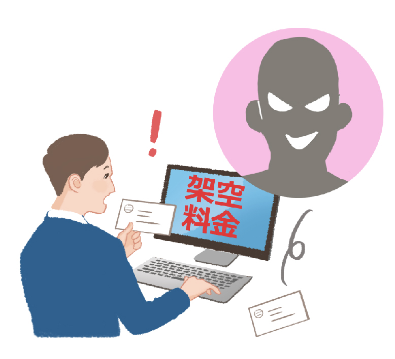 不特定多数の者に対し、架空の利用料金などを請求する文書・メール等を送付して、お金を振り込ませる詐欺です。