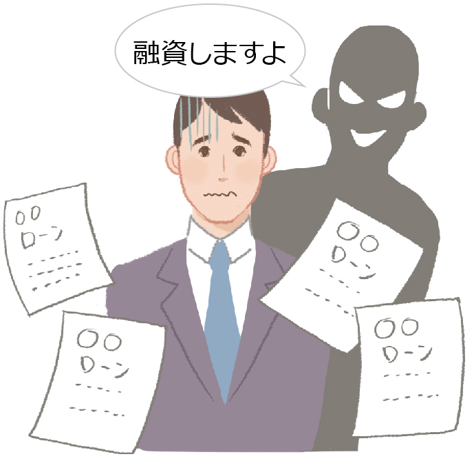 融資を勧誘する虚偽の電話や文書を送付して、融資の申込者から保証金・手数料・調査費等の名目でお金をだまし取る手口です。信用調査名目で消費者金融から借り入れをさせて振り込ませる手口もあります。